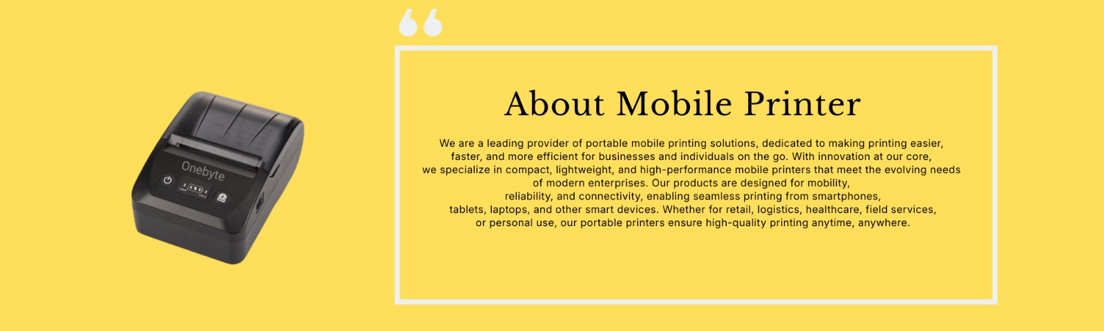 Our products are designed for mobility, reliability, and connectivity, enabling seamless printing from smartphones, tablets, laptops, and other smart devices. Whether for retail, logistics, healthcare, field services, or personal use, our portable printers ensure high-quality printing anytime, anywhere.